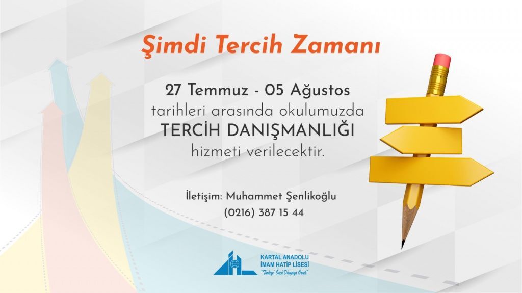 27 Temmuz - 05 Ağustos tarihleri arasında okulumuzda Tercih Danışmanlığı hizmeti verilecektir.