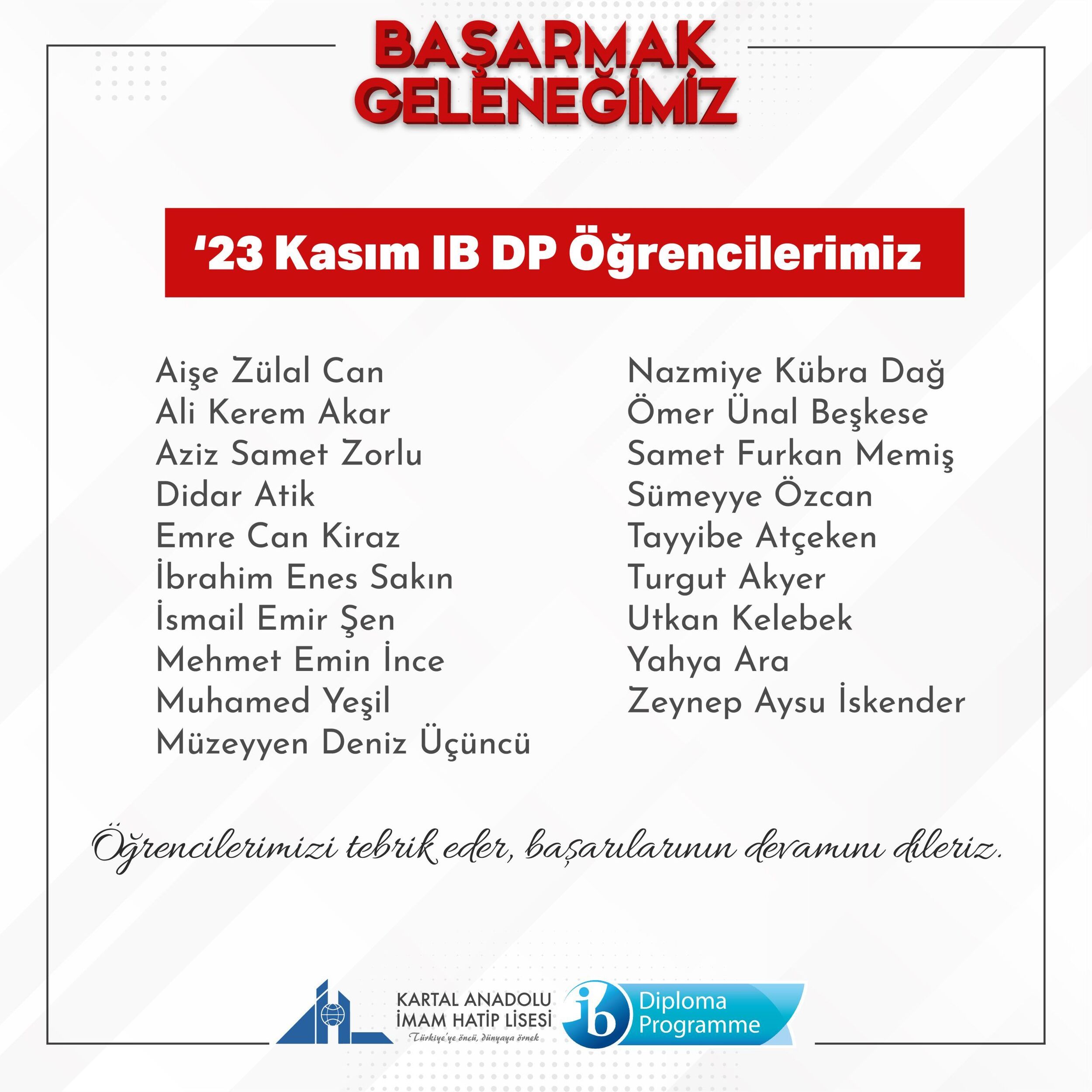 Program boyunca azimle çalışan ve nihayetinde arzu ettikleri başarıya kavuşarak okulumuzu gururlandıran Diploma Programı öğrencilerimizi ve rehberlikleriyle onları daima destekleyen öğretmenlerimizi tebrik eder, emeklerinden dolayı tüm IB topluluğumuza teşekkür ederiz.