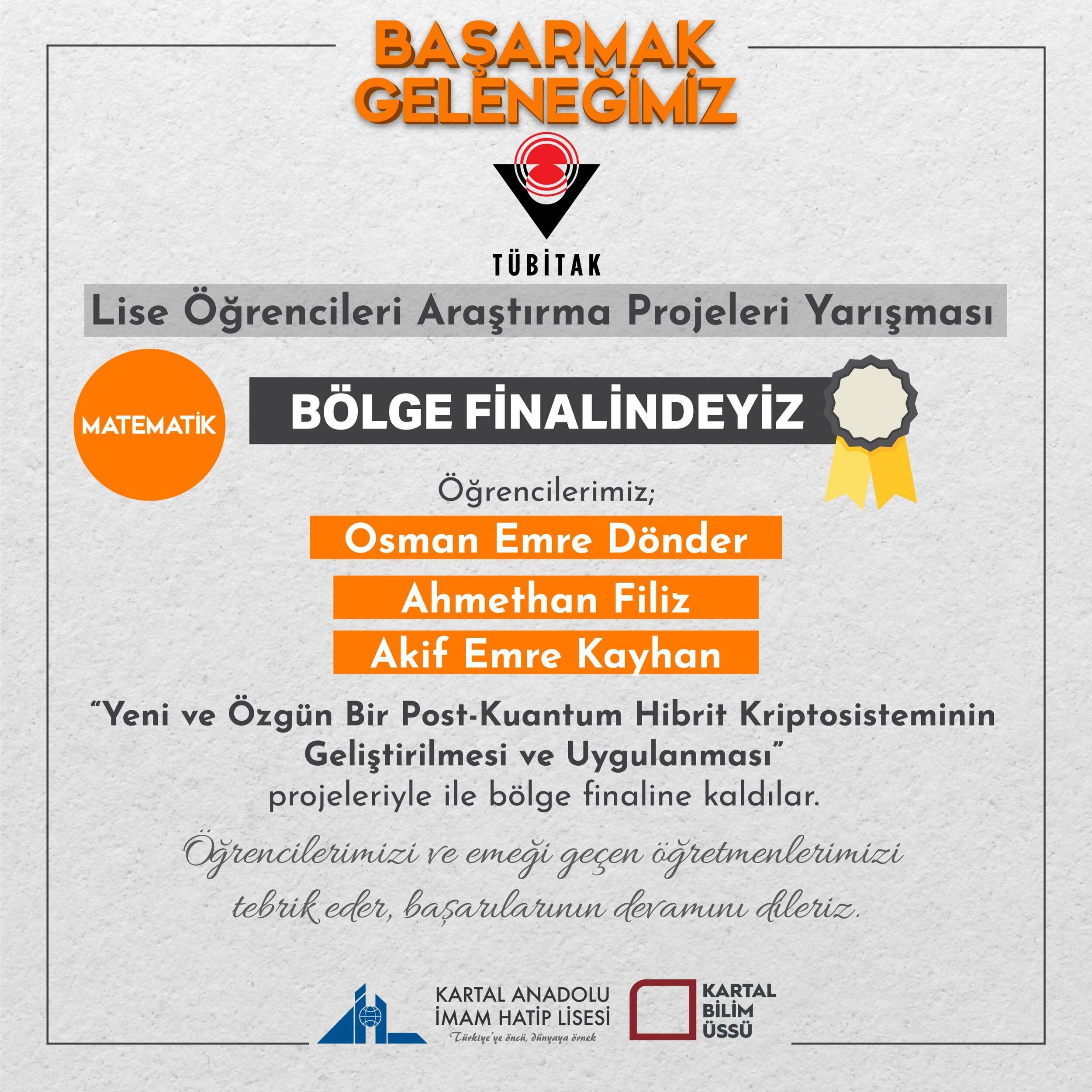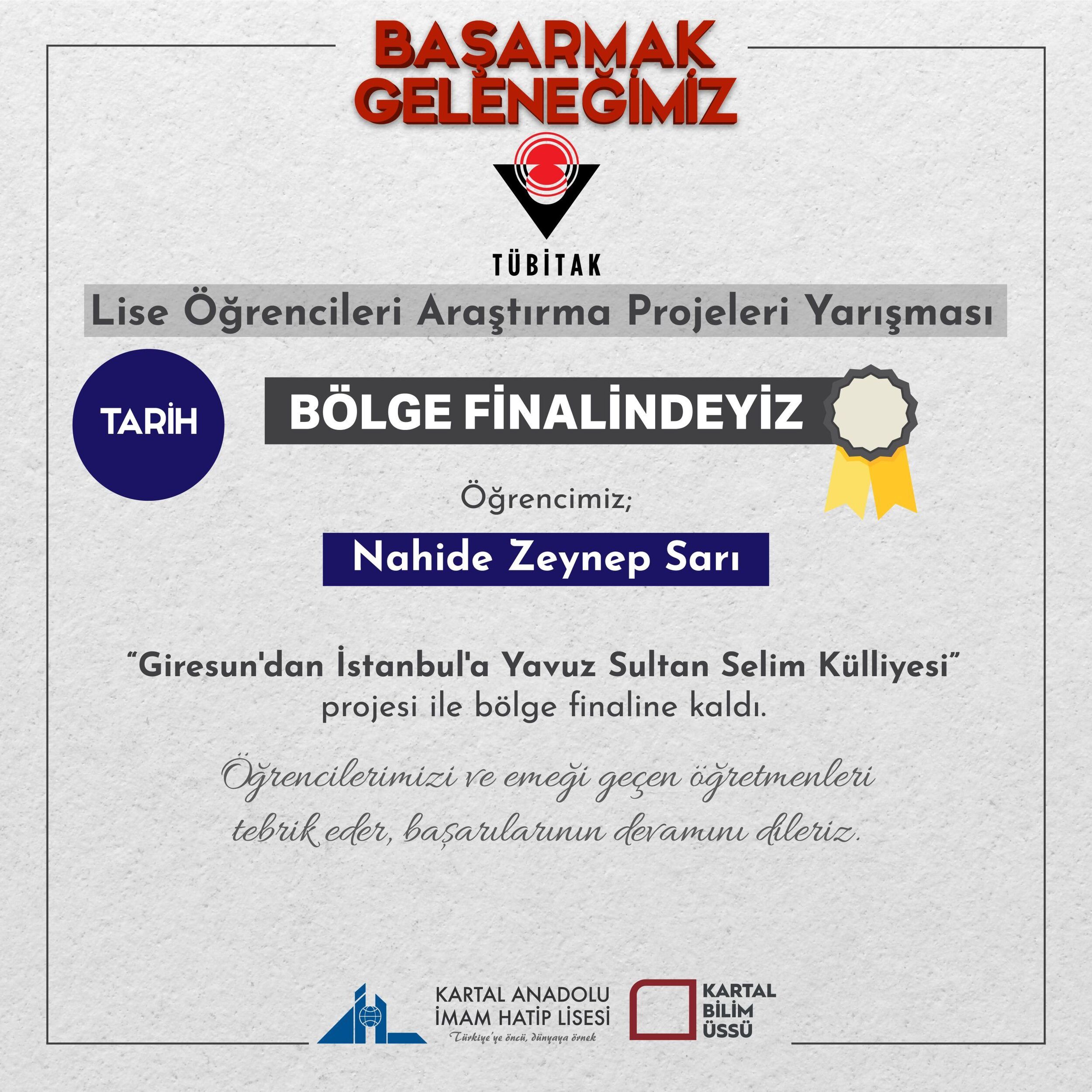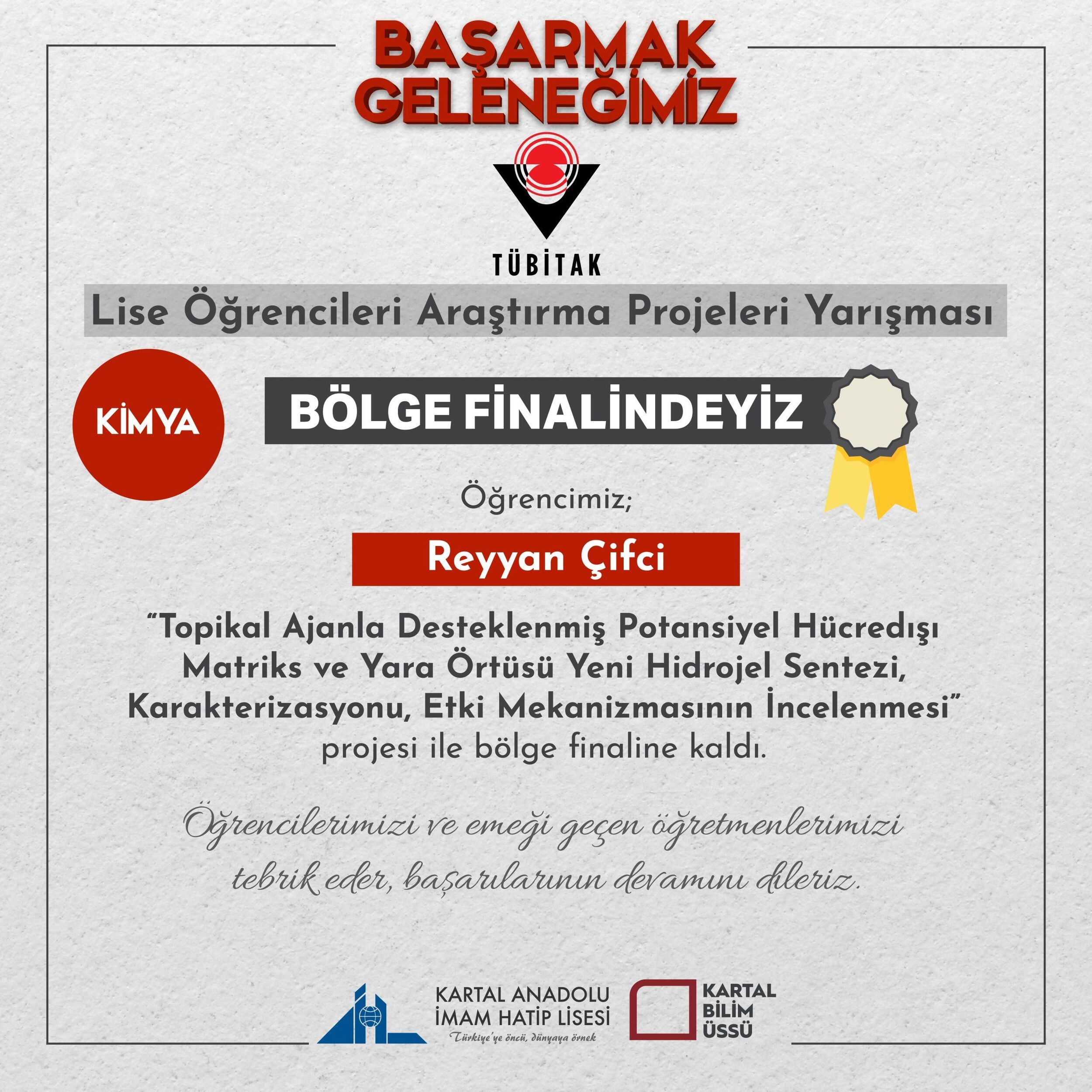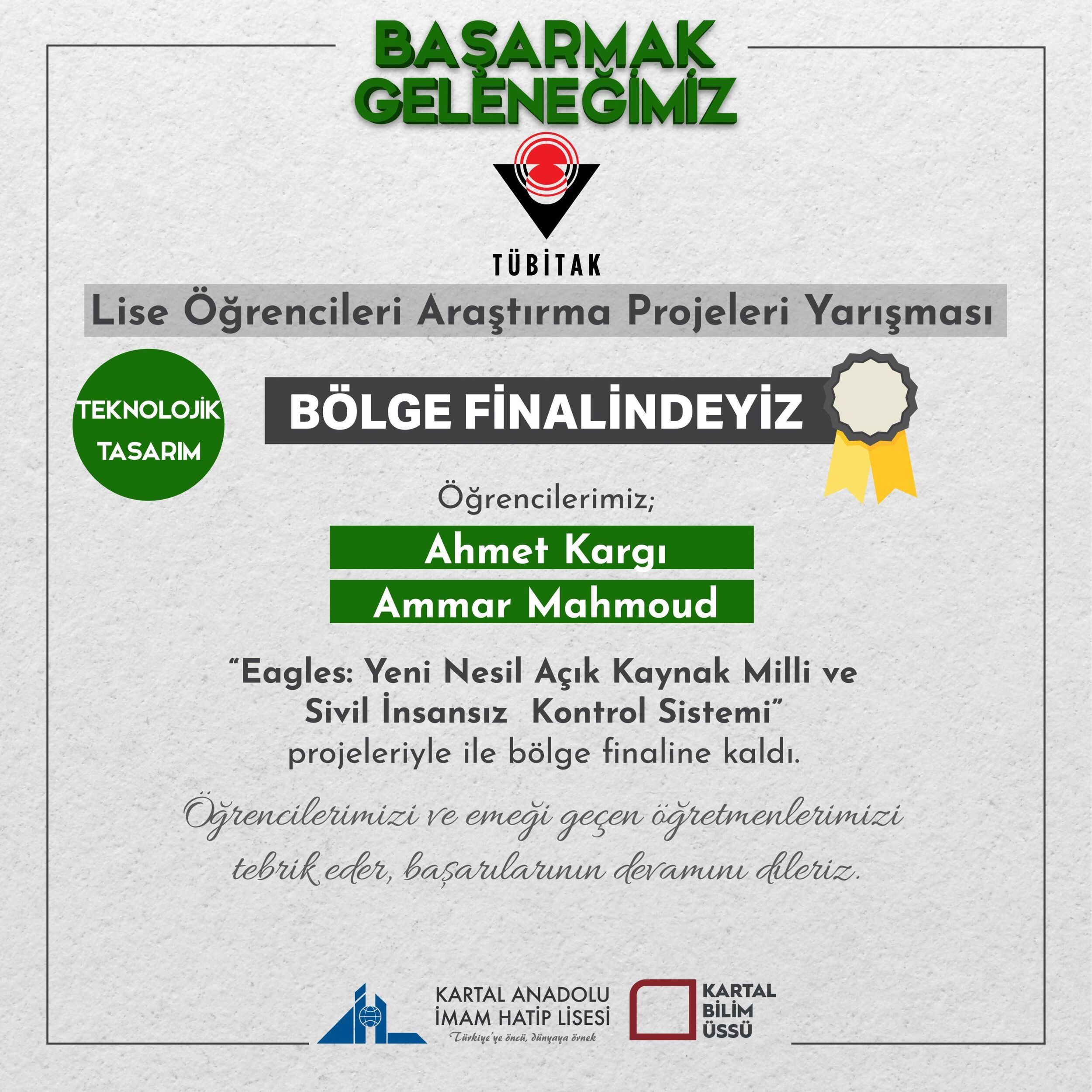 55.TÜBİTAK 2204 A Lise Öğrencileri Araştırma Projeleri Yarışması’nda öğrencilerimiz Kimya, Teknolojik Tasarım, Matematik ve Tarih kategorisinde yarışan 4 projeyle finale kaldılar. Öğrencilerimizi ve emeği geçen öğretmenlerimizi tebrik eder, başarılarının devamını dileriz.