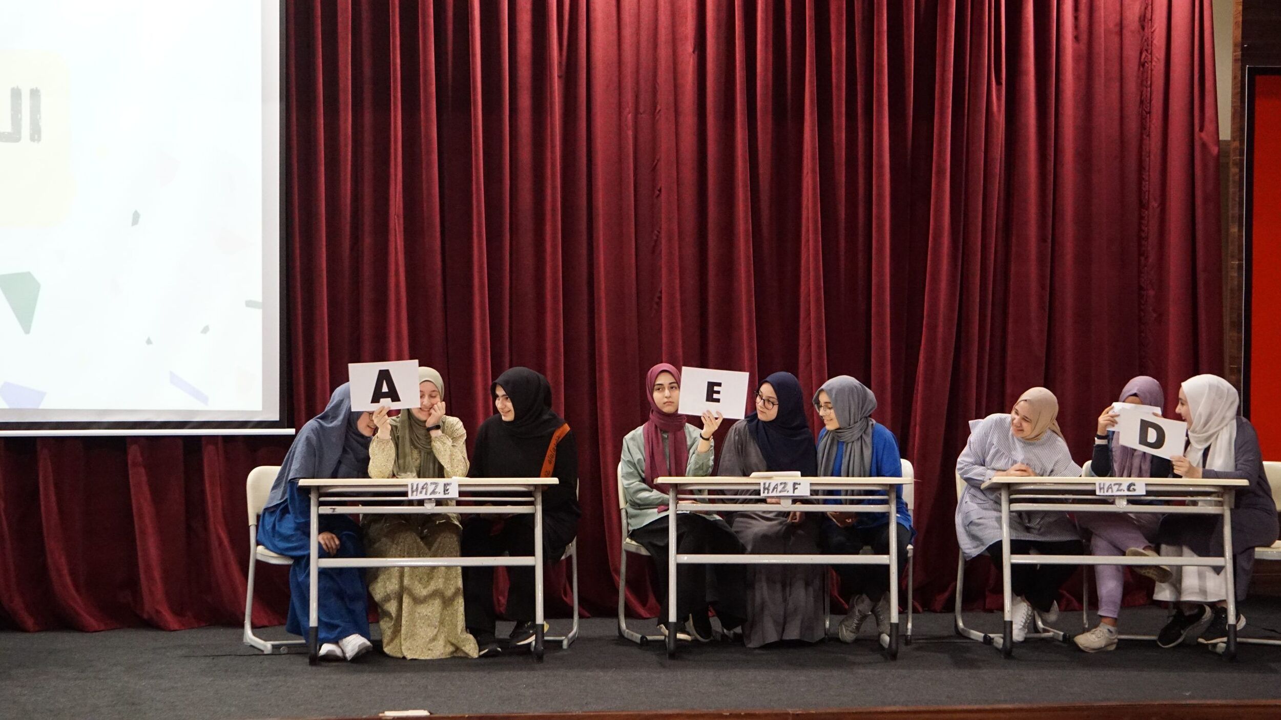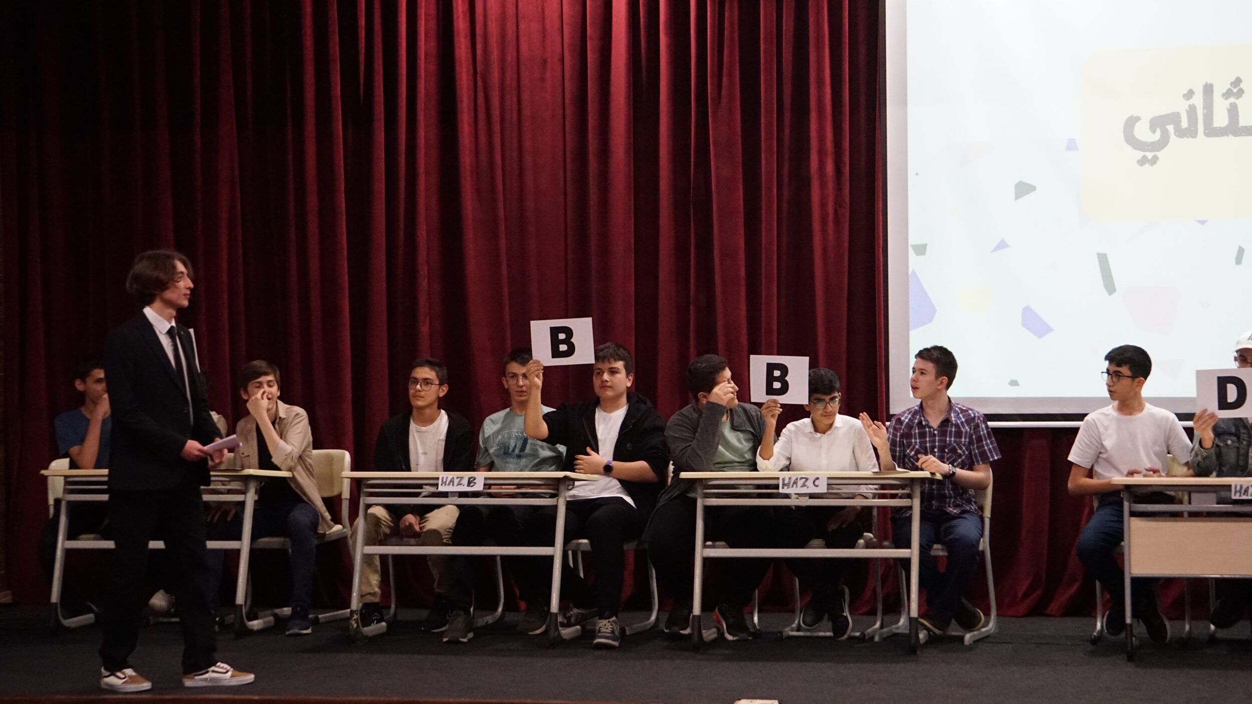 Okulumuz Arapça Kulübü tarafından düzenlenen Sürpriz Ödüllü Arapça Bilgi Yarışması’nda hazırlık sınıfı öğrencilerimiz 25 Nisan'da, 9. sınıf öğrencilerimiz ise 17 Mayıs'da kıyasıya mücadele ederek bilgi ve becerilerini sergilediler.