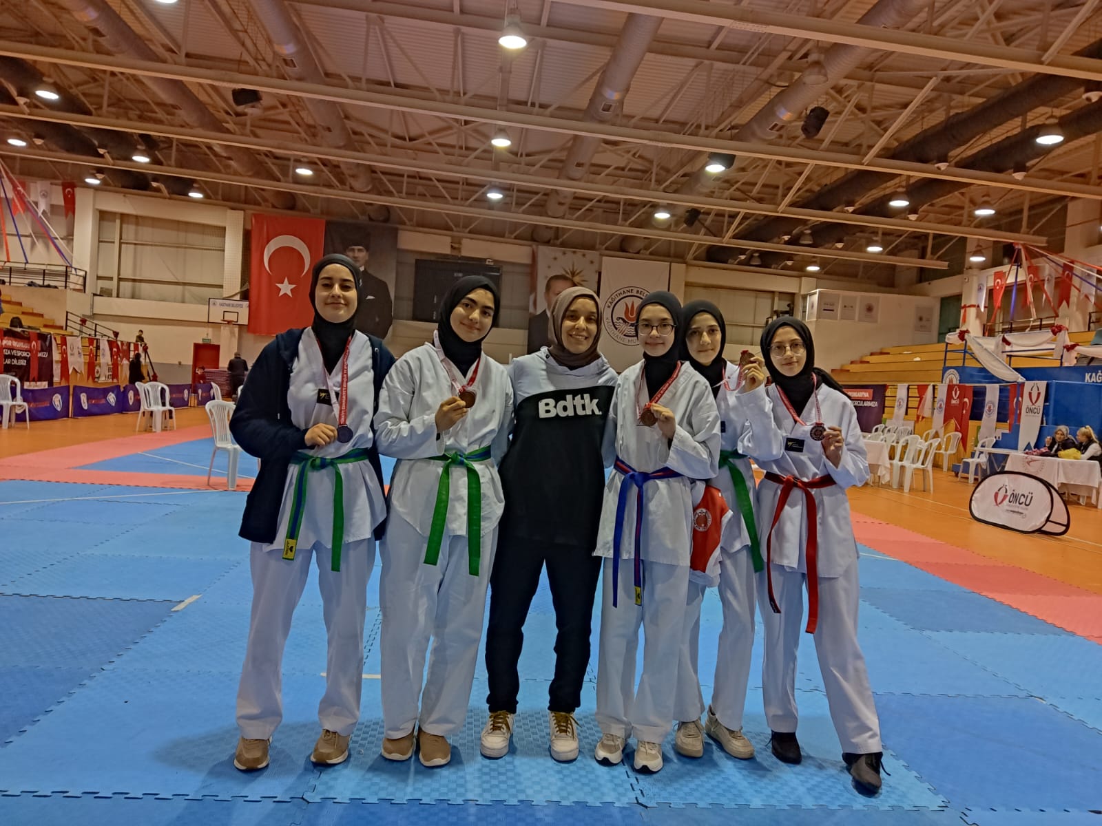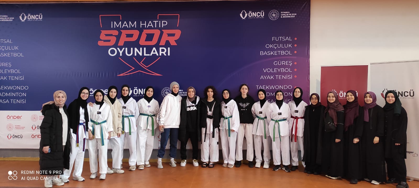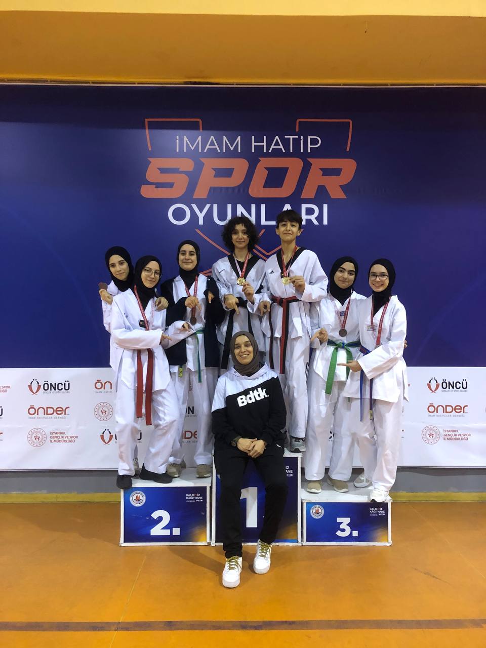 Öncü Spor'un düzenlediği İmam Hatip Spor Oyunları’nda Taekwondo dalında öğrencilerimizden Ayşe Fahrunnisa Cevizci 68 kiloda 3.lük, Hacer Bingöl 63 kiloda 3.lük, Betül Çakır 52 kiloda 2.lik, Beyza Özyurt 42 kiloda 3.lük madalyaları kazandılar.