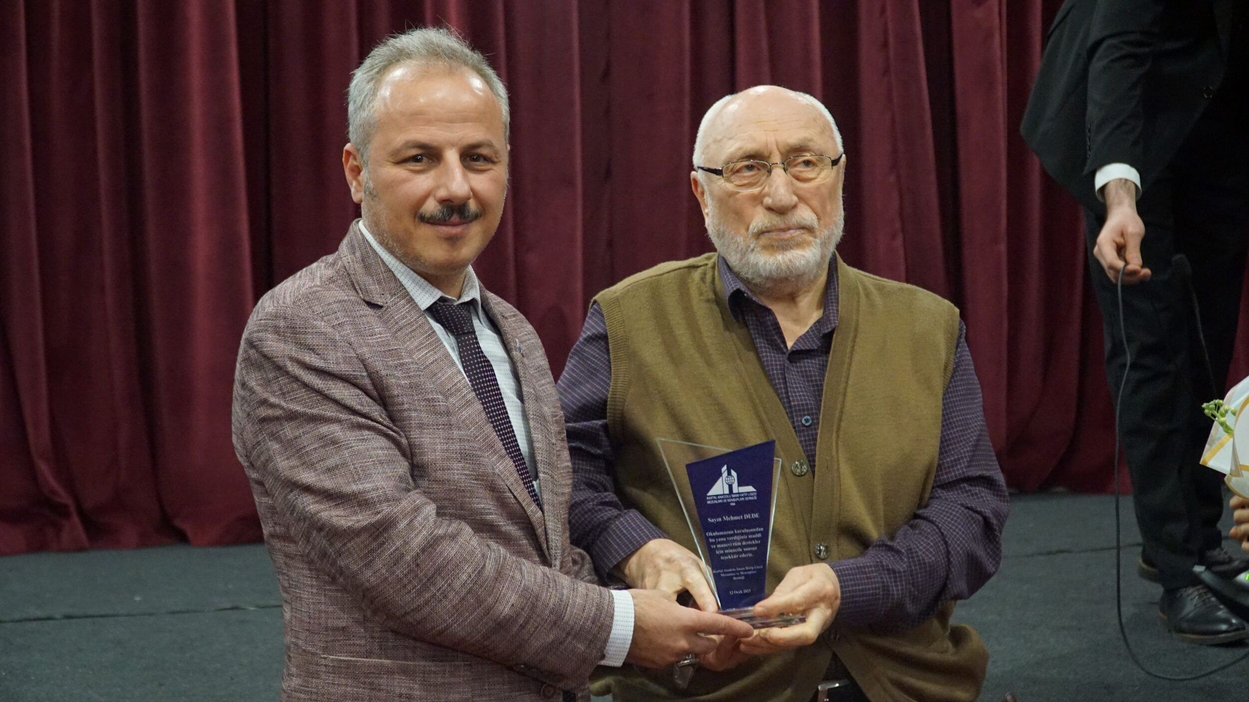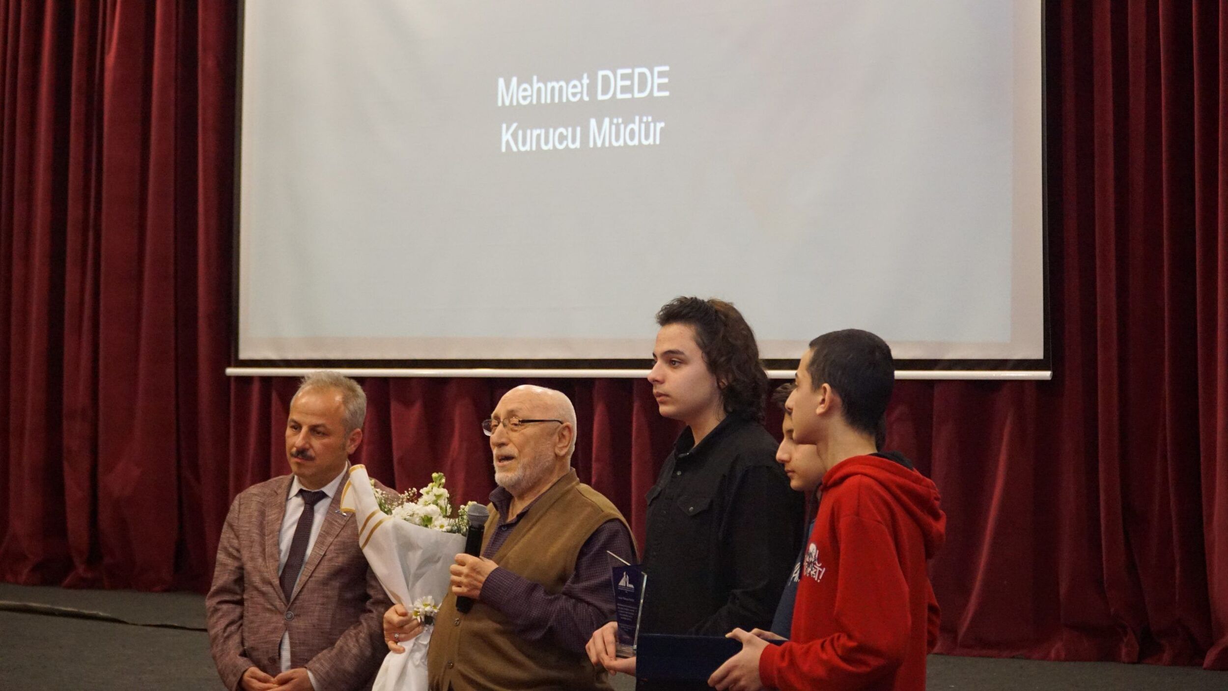 Programa teşrif eden kıymetli büyüklerimiz; Mehmet DEDE (Kurucu Müdür), Feyzullah KIYIKLIK (Okul Aile Birliği İlk Başkanı), İsmail KAYA (Okul Derneği YK Üyesi), Mehmet İPŞİRLİ (Okul Aile Birliği Üyesi) ve Merhum büyüklerimiz; Okul Derneği Başkanları Hacı İsmail KASAROĞLU, Abdullah SARIMERMER, Okul Derneği ve Okul Aile Birliği Yönetim Üyeleri Mehmet ÇAKIR, Musa BAYRAM, Hasan ERKUT, Ali KAYA ve Abdülkadir HAYMANALI adına ise çocuklarına teşekkür plaketi ve çiçeklerimizi takdim ettik. Program esnasında değerli hocalarımız Ferhan ve Fatma Hanım'ın çiçek takdimi ile de Kurucu Müdürümüz Mehmet DEDE'nin eşi Emine Hanımefendi'ye öğrencilerimiz üzerindeki tüm emekleri için teşekkürlerimizi sunduk.