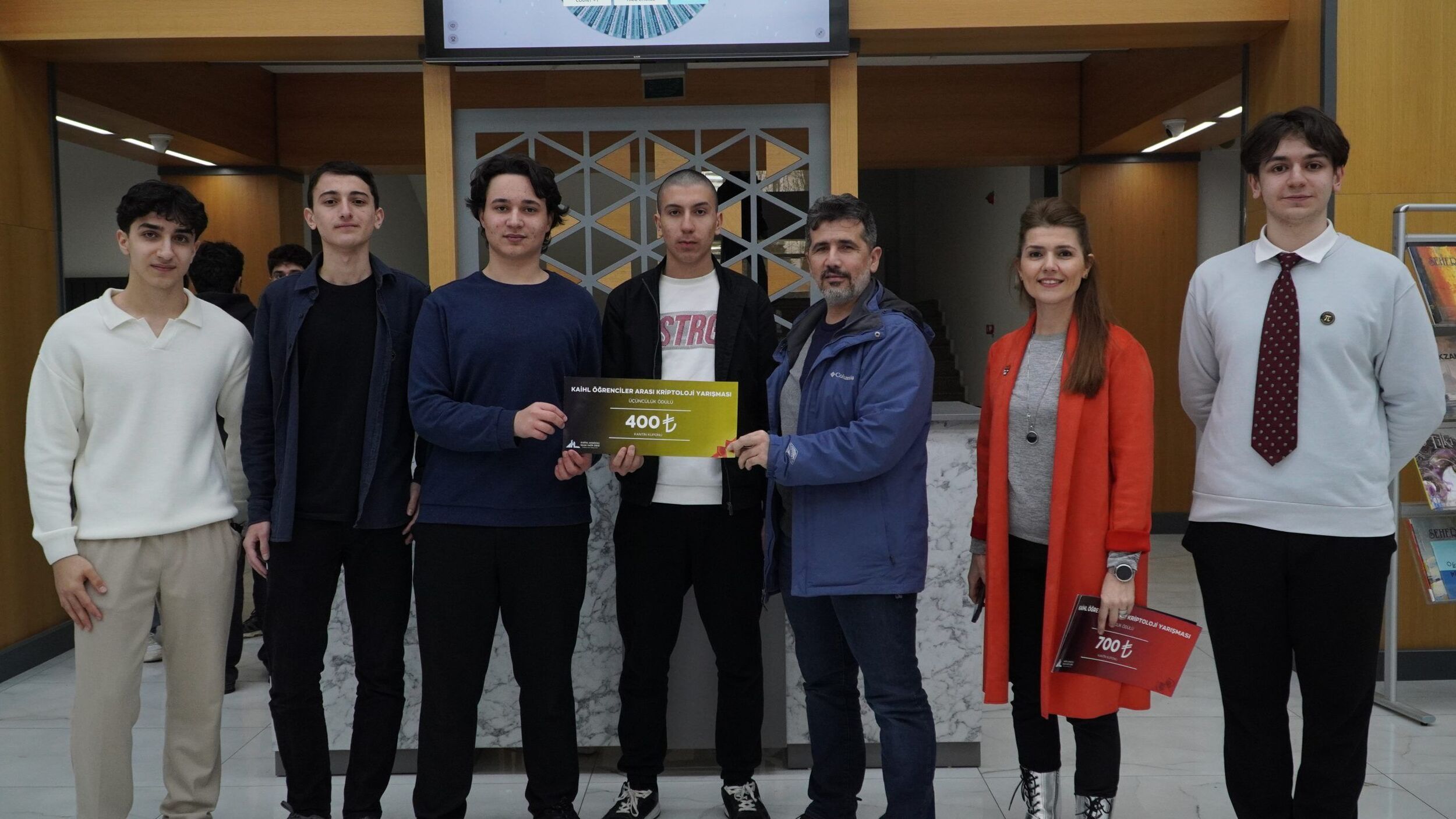 Esra Onatçalı Ertuğ ve öğrencileri Esat Onuş, M. Taha Yıldırım, M. Fatih Aydın tarafından hazırlanan yarışmaya okulumuz öğrencilerinden oluşan 60 takım katıldı. Yarışmada okulun farklı yerlerine gizlenmiş şifreli soruları çözerek ilerleyen öğrencilerimiz final şifresine ulaşmak için kıyasıya mücadele ettiler. Eğlenceli anlara sahne olan yarışmanın kazanan takımları;