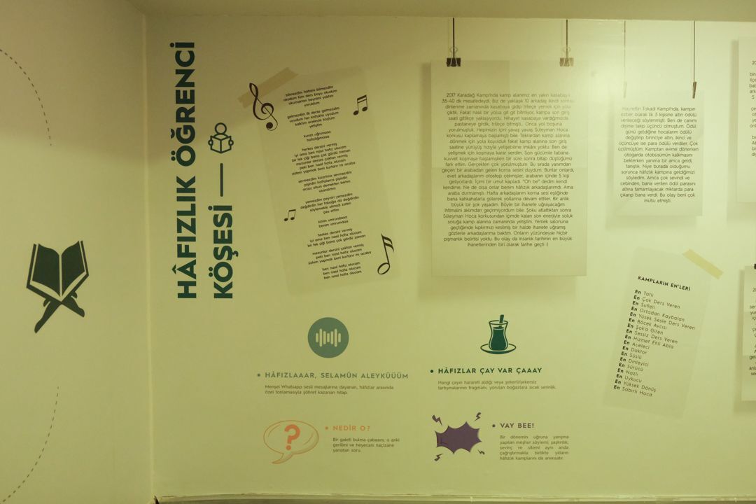 Sergide, kulübün kuruluşundan itibaren gerçekleştirilen kamplar, hafızlık süreci, öğrenci anıları, kamp hatıraları, hafızlık sözlüğü, vefa köşesi ve dünden bugüne yetişen hafızlarımızın kazandıkları üniversiteler gibi çeşitli içerikler yer alacak. Konsept sergimiz, 31 Mayıs 2024 Cuma günü Galeri Kartal’da ziyaretçilerini bekliyor.